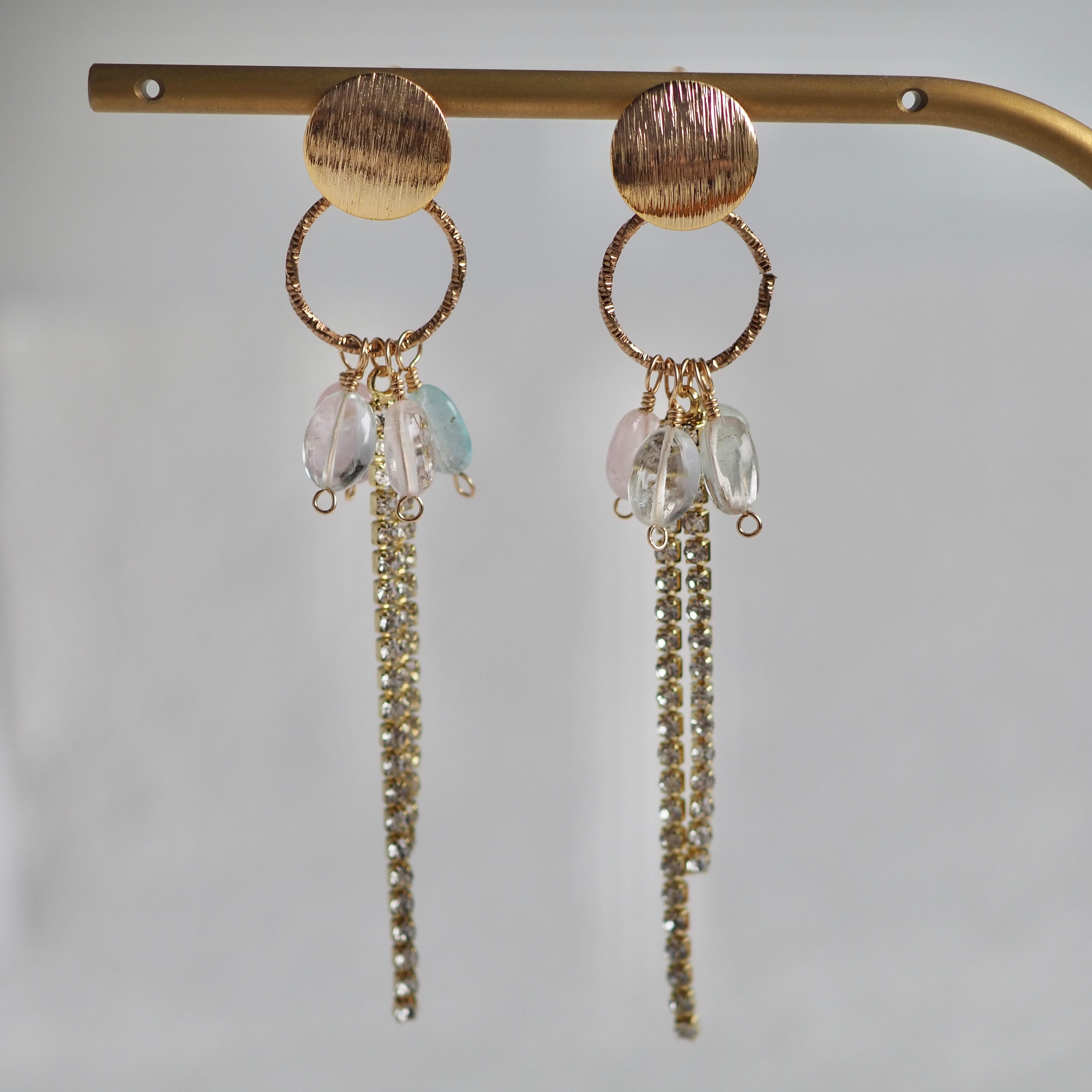 ゴールド アクアマリンとモルガナイトのベリルピアス 18kgp