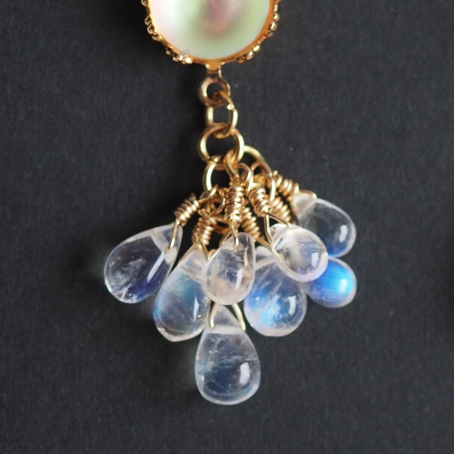 レインボームーンストーンのたわわピアス